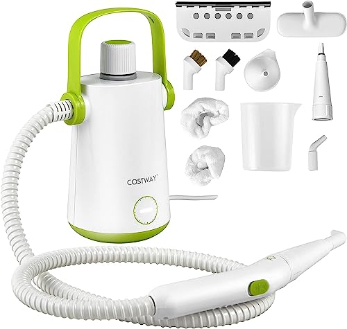 COSTWAY ångrengörare handenhet | 1 000 W & 300 ml vattenkapacitet & 10 tillbehörssatser | Steamshot Steam Cleaner för alla, mattor, fönster, kuddar, badrum