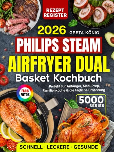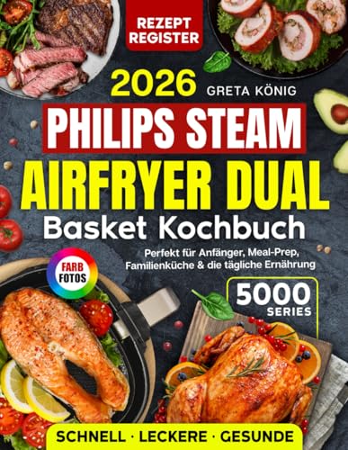 Philips Steam Airfryer Dual Basket Rezeptbuch XXL 2026: Köstlich und kreative deutsche Rezepte für den Philips 5000 Series Heißluftfritteuse mit ... kochen mit Heißluft und Zwei-Korb-System