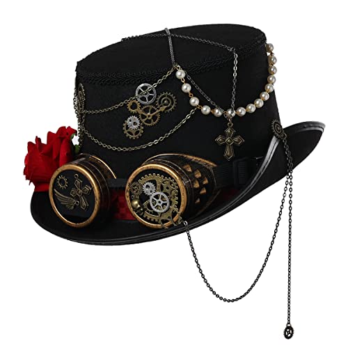 BLESSUME steampunk cylinderhatt med glasögon för karneval, halloween, temafest, svart 1, M