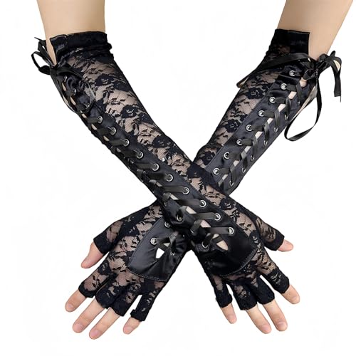 Shengxi 1 par långa snörningshandskar för kvinnor, svarta fingerlösa armbågshandskar brudsnörningshandskar steampunk handskar för fest bröllop halloween maskerad karneval, Svart noir noir, Estándar