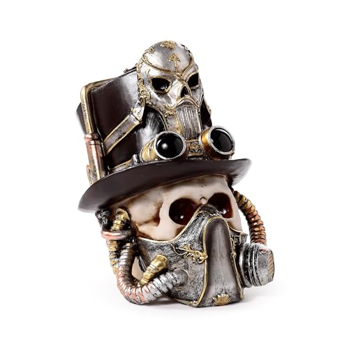 Puckator Dekorativ Skalle Steampunk-stil med gasmask och hatt - Ornamental Harts Skulptur - Gotisk Hemtillbehörsfigur för Halloween