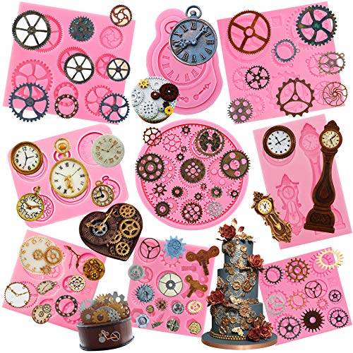 musykrafties Steampunk stil Gear Cog, klocka hjul och klocka fondant silikon formar set 9-pack