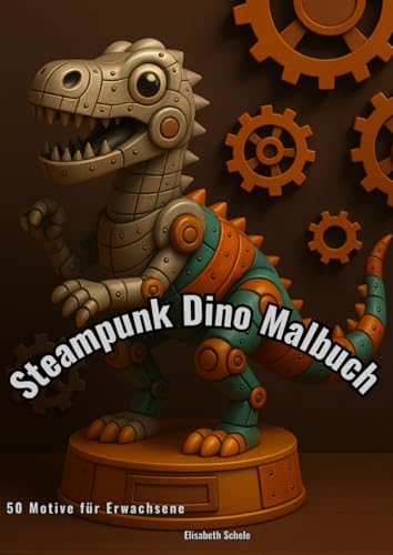 Steampunk Dinosaurier Malbuch für Erwachsene und Jugendliche: 50 detailreiche Ausmalmotive im Steampunk-Stil – Fantasievolle Dinosaurier