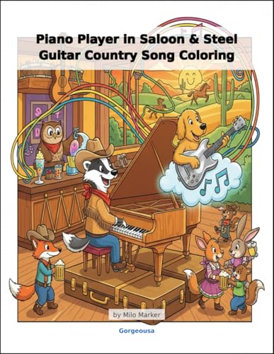 Piano Player in Saloon & Steel Guitar Country Song Coloring