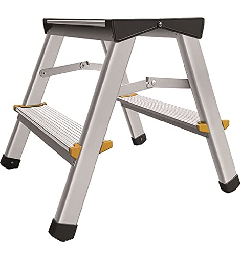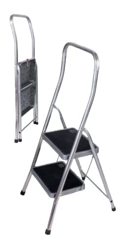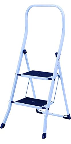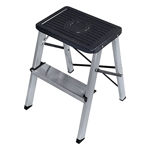 Bakaji Fyrkantig hopfällbar stege med halkfria steg och säkerhetshandtag pall stege stålkonstruktion och gummibeläggning maximal belastning 150 kg (2 steg)