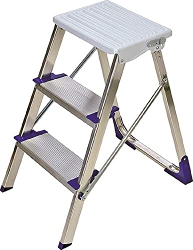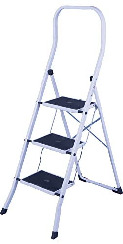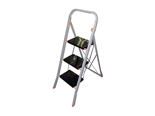 Bakaji Fyrkantig hopfällbar stege med halkfria steg och säkerhetshandtag pall stålkonstruktion och gummibeläggning maximal belastning 150 kg (3 steg)