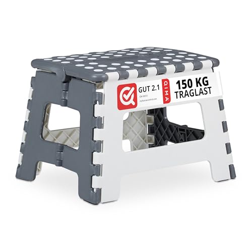 HOUSE DAY 40 cm (16 tum) fällbar stegpall – stor storlek kök hopfällbar stegpall för vuxna platsbesparande hopfällbar pall för barn och vuxna steg hållbar plastpall kraftig vikbar pall grå