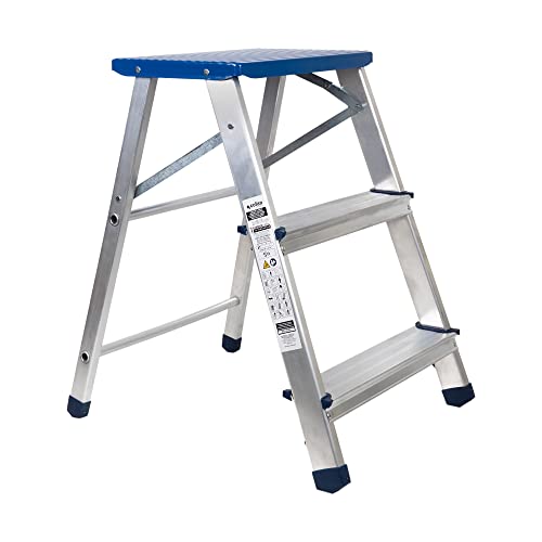 Avilia Hopfällbar pall med 2 steg i aluminium vit/blå - utrymmesbesparande design, multifunktionell för inomhus/utomhus - stabil, lätt och bärbar - perfekt för hem, kontor, trädgård - 80 x 36 x 80 cm