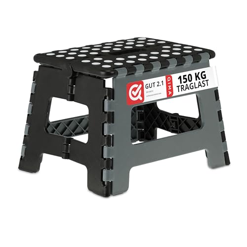 Relaxdays Stegpall vikbar, 1 steg, hopfällbar pall med handtag, upp till 120 kg, plast, 22,5 x 32 x 25 cm, grå/svart