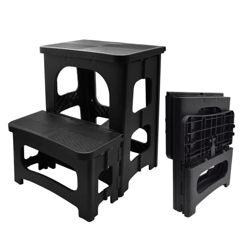 JNUYISW 2 steg, stegpall, bärbar hopfällbar pall med halkfri slitbana, 150 kg, lastkapacitet, vikbar stegpall för barn och vuxna, 2-stegs pall för kök, hus, kontor, utomhus