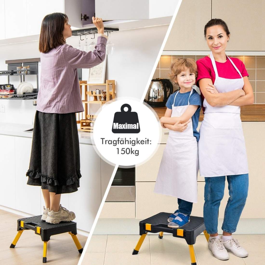 VEVOR Steg vikbar fotkapacitet 150 kg stege med 2 steg i stål bred multifunktionell pall med yta och halkfria skridskor för vuxna, småbarn, hem, kök, kontor, husbilar