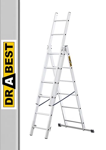 DRABEST - Hem - Aluminiumstege - 3x7 stegpinnar - Max. 3,25 m lång - Max. arbetshöjd 4,23 m - Upp till 150 kg - 3-delad - Multifunktionell, uppfällbar, utdragbar hopfällbar stege - halkfri - Justerbar