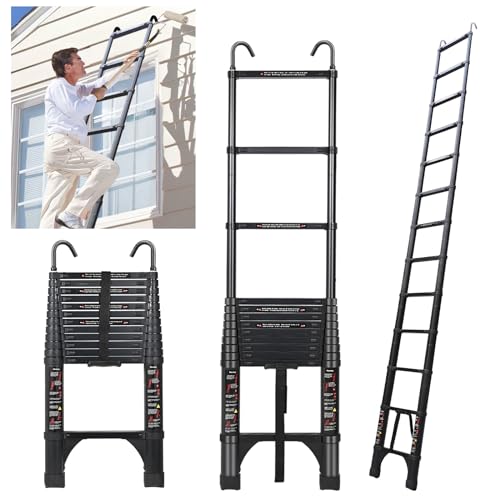 Cecaylie Teleskopstege 3,8 m aluminium multifunktionsstege med 2 avtagbara krokar, stege teleskopdesign, 150 kg/330 pund lastkapacitet, stående stege halkfri, svart