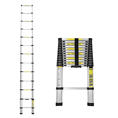 Jopassy 3,8 m teleskopstege, aluminiumstege – halkfri fällbar stege stående stege multifunktionsstege – 13 ribbor – 150 kg/330 pund lastkapacitet