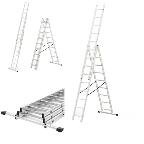 DRABEST - Hem - Aluminiumstege - 3x9 stegpinnar - Max. 4,54 m lång - Max. arbetshöjd 5,47 m - Upp till 150 kg - 3-delad - Multifunktionell, stegad, utdragbar hopfällbar stege - halkfri - justerbar