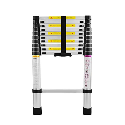 VEVOR Teleskopstege i aluminium 3,8 m utdragbar trappstege 170 kg kapacitet med halkfria fötter Bärbar mångsidig kompakt stege En knapp för att dra in för hemreparation husbil