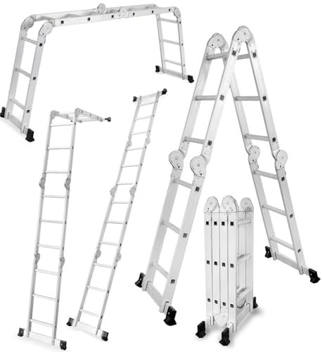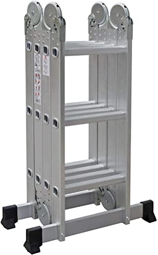 DRABEST - Ledad stege 4x3 stegpinnar - Fällbar stege, aluminiumstege - Maximal belastning upp till 125 kg - Multifunktionsstege, förlängningsstege - Aluminiumstege, hopfällbar - 0,33 x 0,98 x 0,25 m