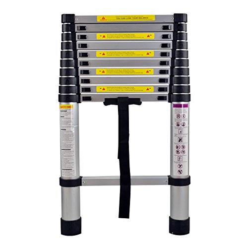 Lospitch 3,8 m teleskopstege i aluminium, hopfällbar, utdragbar stege, multifunktionsstege med fjäderbelastad låsmekanism, 150 kg maxvikt för hemarbeten, vind, trädgård