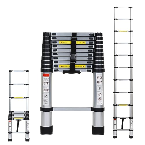 EINFEBEN Teleskopstege av aluminium, hopfällbar, mångsidig stege som kan användas till mycket, utdragbar, 150 kg maxvikt, 3,2 m