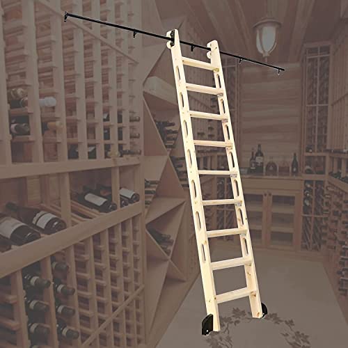 Rullstege, hårdvarusats, skjutbar ladugårdsdörr, hårdvarusats, svart stål, rullande biblioteksstege, sats med golvrulle (ingen stege), 1 m (3,3 fot), runt rör, kolstål, rullande, komplett set spårsats