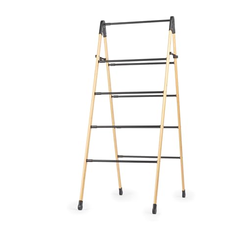 Beldray 4-stegs expanderbart torkställ – vikbar stege design, bamburam, stålstänger, maximal 10 kg, lätt, kompakt förvaring, expanderar horisontellt från 3,4 m till 6,1 m