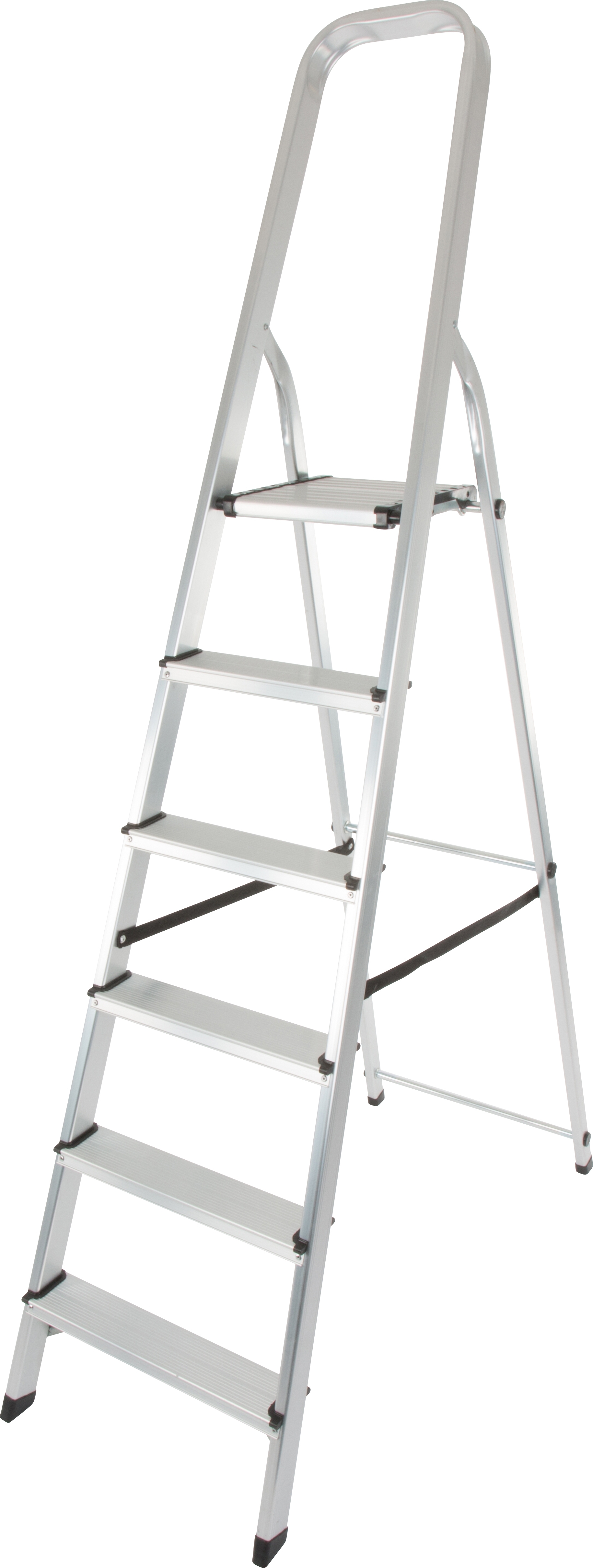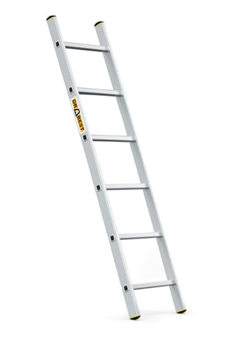 DRABEST PRO Series Enkel stege Aluminium Stege - 6 steg - med stegkrok - Lastkapacitet 150 kg - Halkfria fötter, Lättvikt, Korrosionsbeständig - EN131