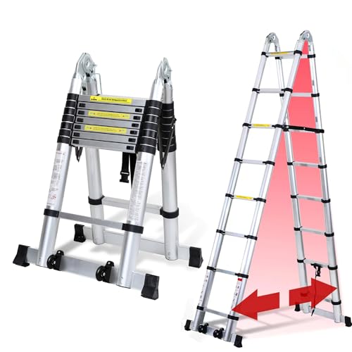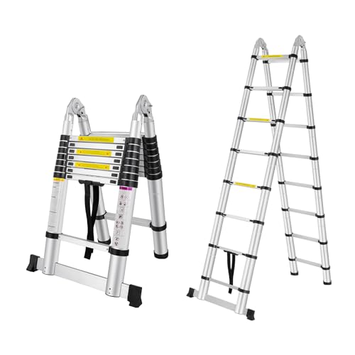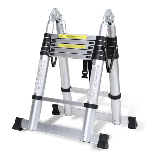 Nictemaw 5 m teleskopstege, teleskopstege av aluminium 150 kg lastkapacitet, 2 i 1 fällbar stege multifunktionsstege av aluminium, för inomhus- och utomhusbruk