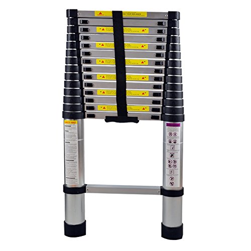 Jopassy Hopfällbar teleskopstege i aluminium, 3,8 meter utdragbar stege, halkfri aluminiumstege, trappstege, multifunktionsstege, utdragbar teleskopstege med 150 kg lastkapacitet
