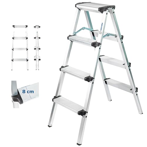 DRABEST Ladder PRO-serien Aluminium Fällbart Steg 4 Steg Hopfällbar stege med säkerhetsräcken Lastbar upp till 150 kg