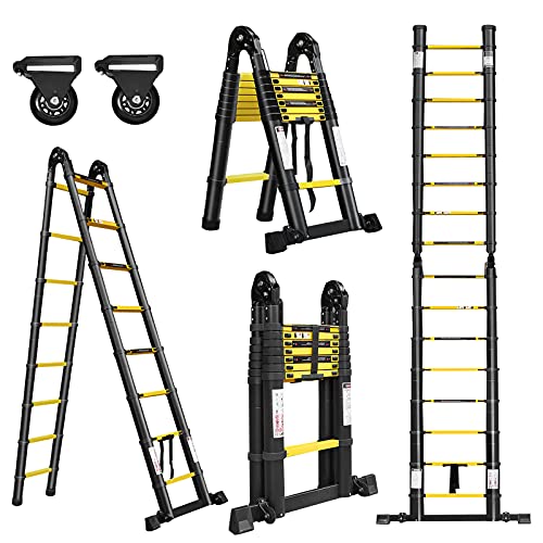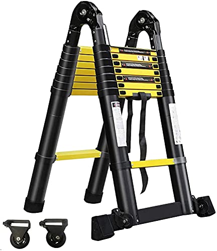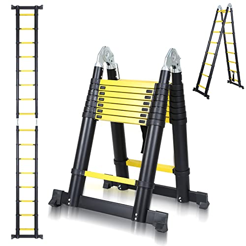 Froadp Universalstegar i Aluminium Fällbar Stege Teleskopstegar Multifunktionell Trappstegar Förlängningsstegar Multiplexstege Aluminiumstege Utdragbar 150KG Lastkapacitet (500cm, Svart+Gul)