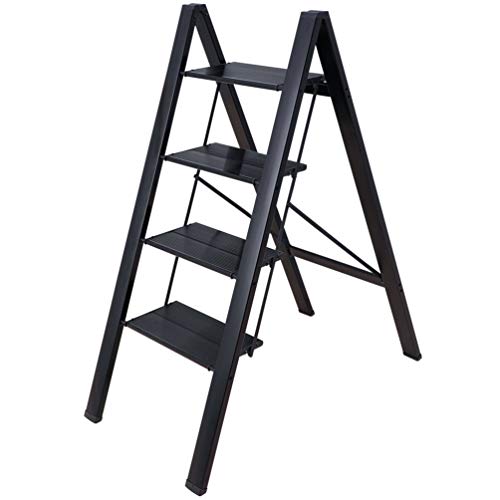 BAOYOUNI 4-stegs stege lätt vikbar stegpall i aluminium, kraftiga trappstegar, 135 kg med halkfri bred pedal för hushåll, kontor, garage, trädgård, målning – svart