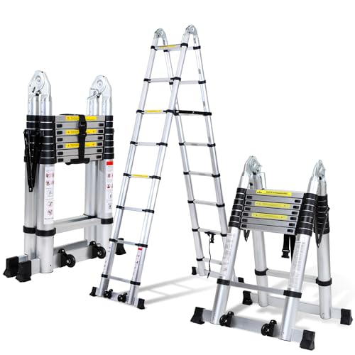 Teleskopisk stege i aluminium som kan förlängas och vikas, kompakt, lätt, bärbar och halkfri | Perfekt för hem, yrkesverksamhet, renovering, trädgård, verkstad, höjder och förvaring