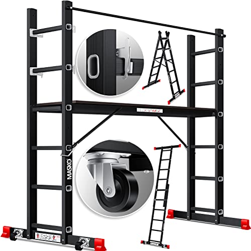 Masko Byggnadsställning av aluminiumram ✓ aluminium ✓ stege ✓ arbetsställning ✓ arbetsscen| kan belastas upp till 150 kg| halkfri belagd| Ställstege| GS testad (EN 131), svart