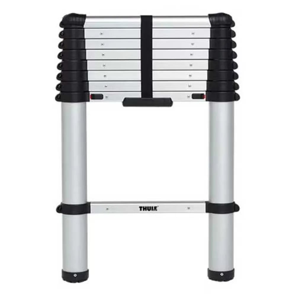 4,4 m teleskopisk stege, aluminium, hopfällbar, expanderbar, multifunktion, max arbetshöjd 5,3 m, avtagbara krokar, 5 års garanti