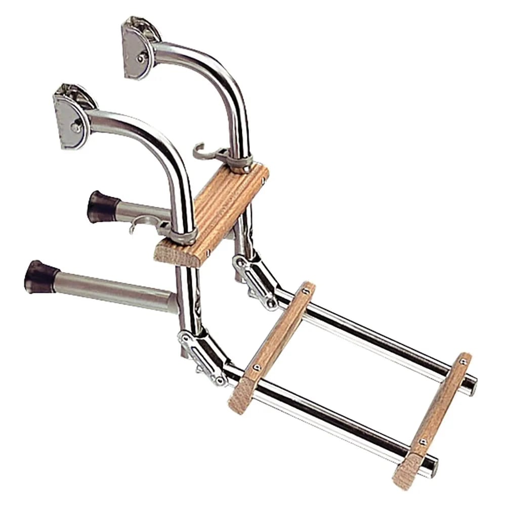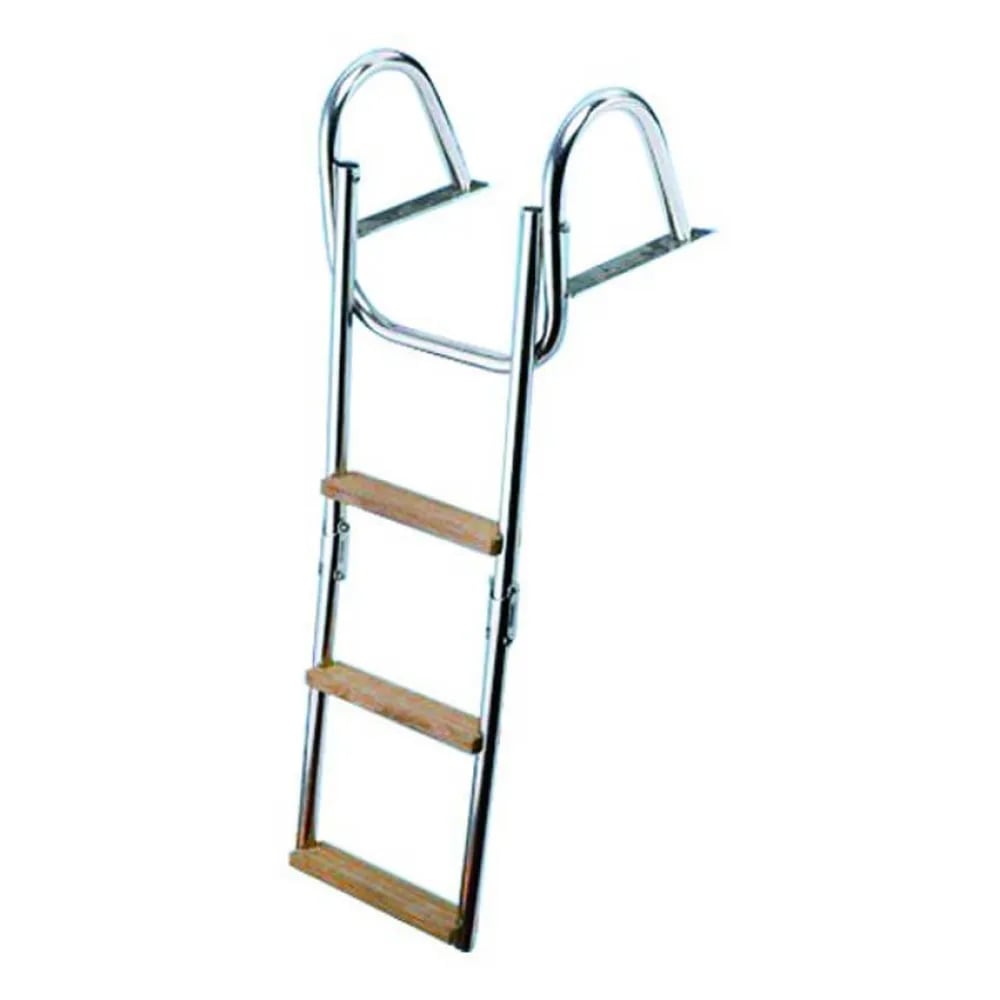 Trem Rostfritt Stål Hopfällbar Stege Med Trästeg För Uppblåsbar Båt