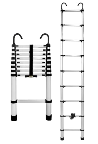 HENGMEI 5 m teleskopstege i aluminium, hopfällbar stege, stående stege, multifunktionsstege, stege, startstege, aluminiumstege (5 m, hopfällbar stege)
