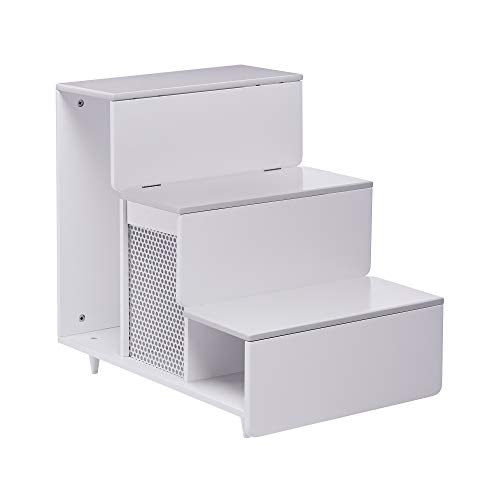 NMDCDH Stegpall med 2 stegstegsteg, trappstol, trä, stora steg, stege, multifunktion, vikbar, kök, steg, säkerhet, halkfri, slitbana/blomställ, vit