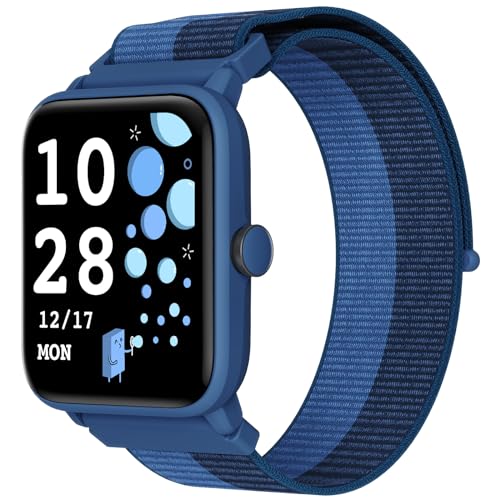 BIGGERFIVE Fitnesspårare för barn, klocka, stegräknare, hjärtfrekvens, 5 ATM-vattentät, sömnspårning, väckarklocka, kaloriräknare, pusselspel, 1,5-tums smartklocka för pojkar, flickor 3–14 år, nylon