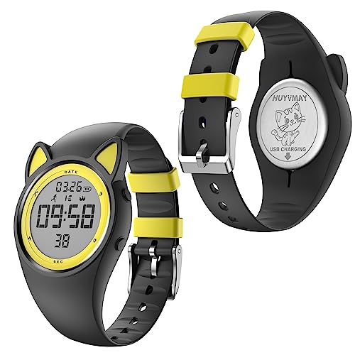 HUYVMAY barn Fitness Tracker stegräknare klocka utan app, söt sportklocka för flicka pojke barn, IP68 vattentät digital klocka med stegräknare, distansräknare, kaloriräknare, stoppur, 3 väckarklocka