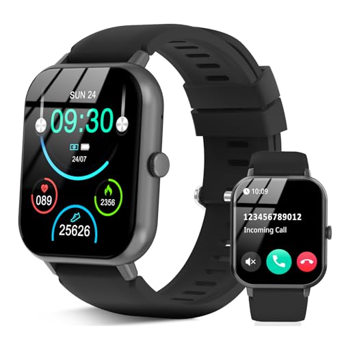 Popglory Smart klocka för män och kvinnor med Bluetooth-samtal, 1,85 tum, sportsmartklocka, hjärtfrekvensmonitor, blodtryck/spO2/stegräknare/sömn, smart klocka för Android iOS