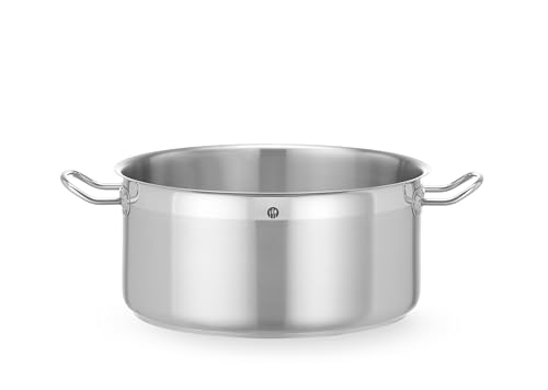 HENDI kastrull, medium, utan lock, lämplig för alla typer av spisar, platt botten, svala hållbara handtag, induktionskokare, stekgryta, köttgryta, 15,1 l, ø 320 x (H) 190 mm, rostfritt stål, aluminium