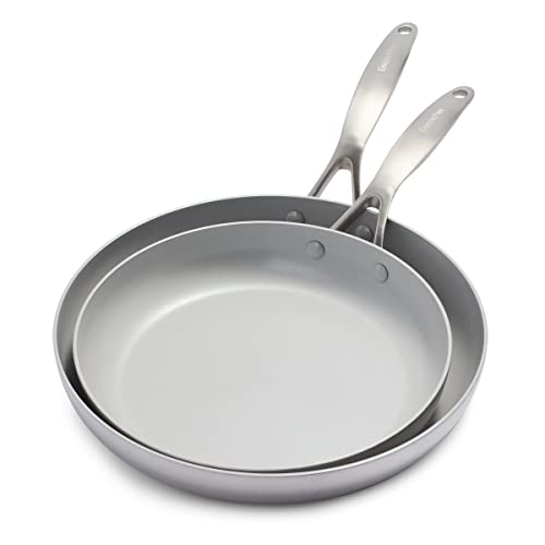 GreenPan Venice Pro Tri-Ply rostfritt stål hälsosam keramisk non-stick 26 cm och 30 cm stekpanna stekpanna, Pfann-fri, multipläterad, induktion, ugnssäker, silver