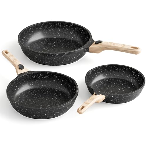 Maifan Stone Stekpanna Set, Non-Stick Stekpanna med Avtagbart Handtag, Jämn Uppvärmning, Induktionsgasspis Köksredskap, Miljövänlig, Lätt Att Rengöra, Kompakt Förvaring, Lättvikt