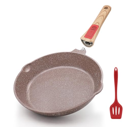 AIKENBBKK Non-stick keramisk stekpanna, 26 cm hälsosam stekpanna med avtagbart handtag, ugnssäker, PFAS PFOA och PTFE fri (brun)