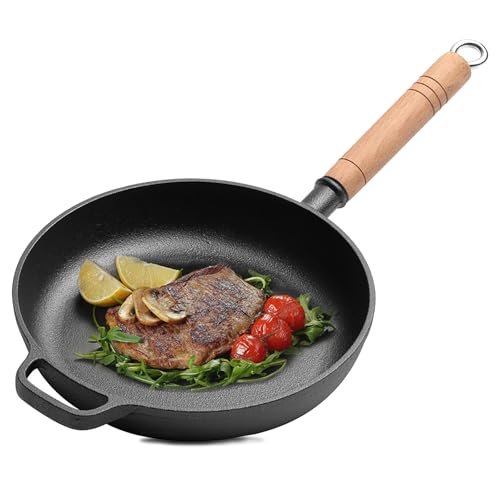 BOYIFEIJIE Gjutjärnspanna, obelagd järnpanna, gjutjärn stekpanna av högrent järn med handtag av massivt trä, naturlig non-stick-effekt, stekpanna för alla typer av spisar inklusive induktion (29 cm)