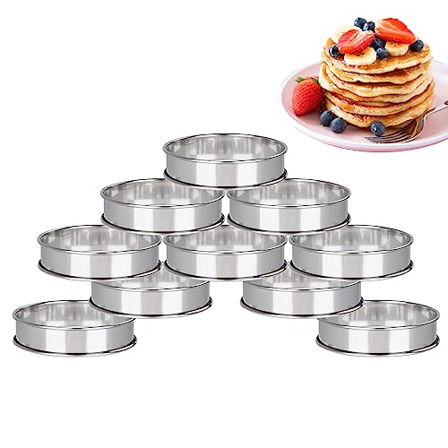 YOUNTHYE 10 stycken dessertringar 10 x 2,5 cm stekpanna 304 rostfritt stål tårtringar liten pannkaksform bakringar rund tårtring för crumpets, pannkaka, tårta, muffin