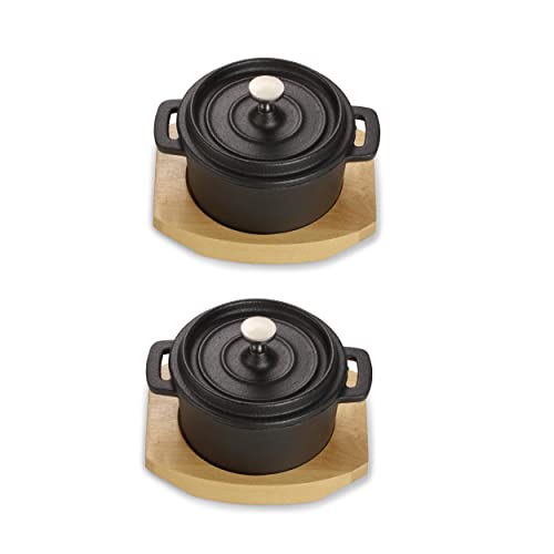 ECHTWERK gjutjärnsgryta set om 2, Minigryta med serveringsbräda, Liten stekpanna, Redan bakad, Lämplig för ugnar, grillar, BBQ och induktion, Perfekt för servering, 250 ml