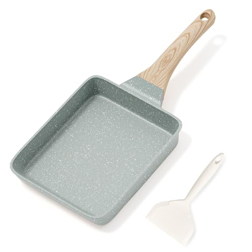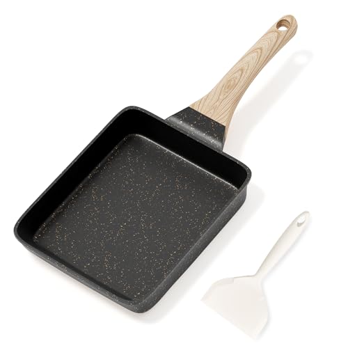 RIOVARM Non-stick Tamagoyaki omelettpanna, induktion äggpanna med granitbeläggning, liten stekpanna utan PFOA, äggpocheringspanna för frukost, pannkakspanna, campingpanna