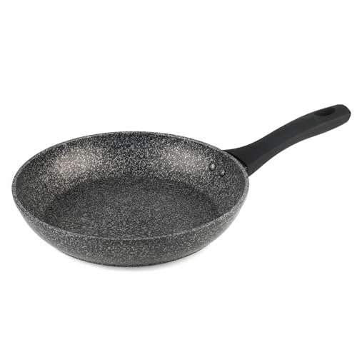 Fackelmann Marble stekpanna 2,0 24 cm, non-stick-panna tillverkad av 90% återvunnen aluminium med ergonomiskt plasthandtag, liten induktionspanna för matlagning och stekning