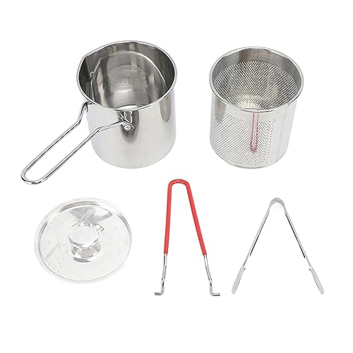 Liten Fritös Gryta med Silkorg, Rostfri Stekpanna med Lock och Tång, Skaldjurskokgryta, för Fritering Av Pommes Frites Fiskkyckling (Set med 4 delar: Stekgryta + Silkorg + Mat)